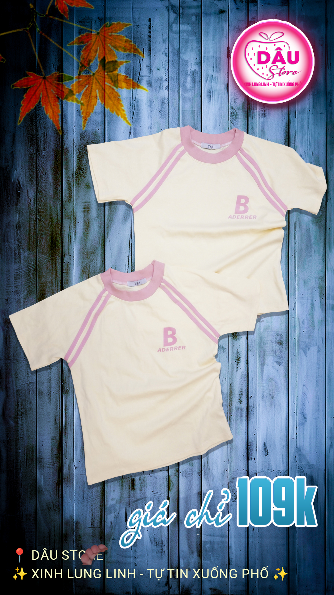 Áo Thun Cổ Tròn Màu Kem Phối Viền Hồng
